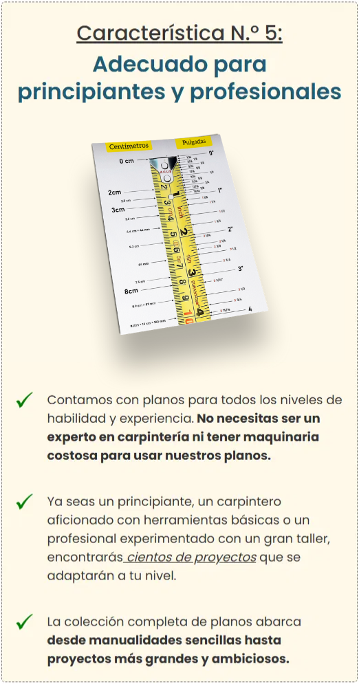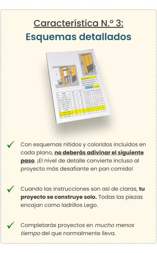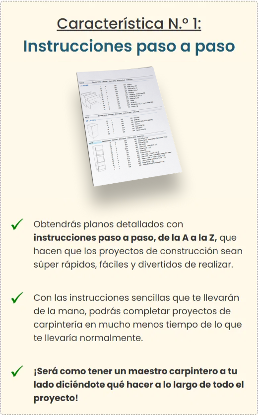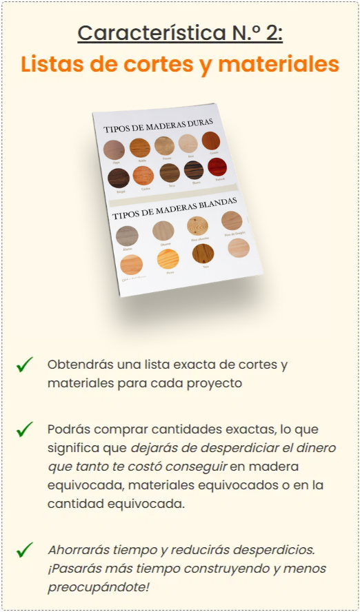 Acceso instantáneo a todos los proyectos con detalles paso a paso, dibujos, planos, listas de cortes, materiales y más...