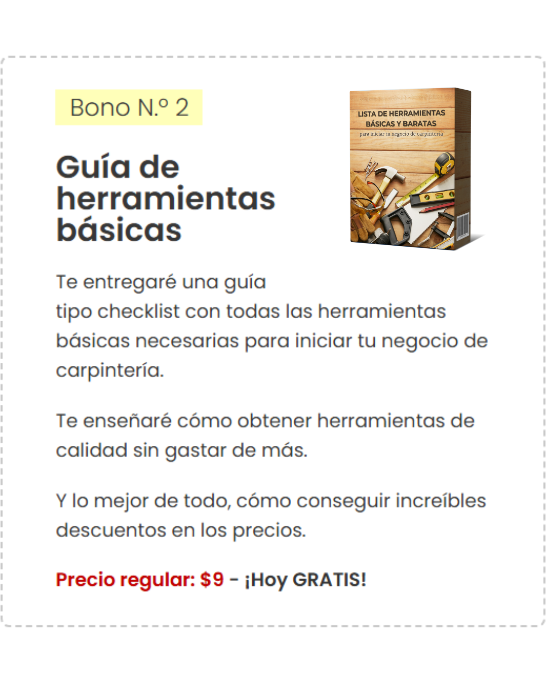 Bono N°. 2: Lista de herramientas básicas y económicas para iniciar tu negocio de carpintería
